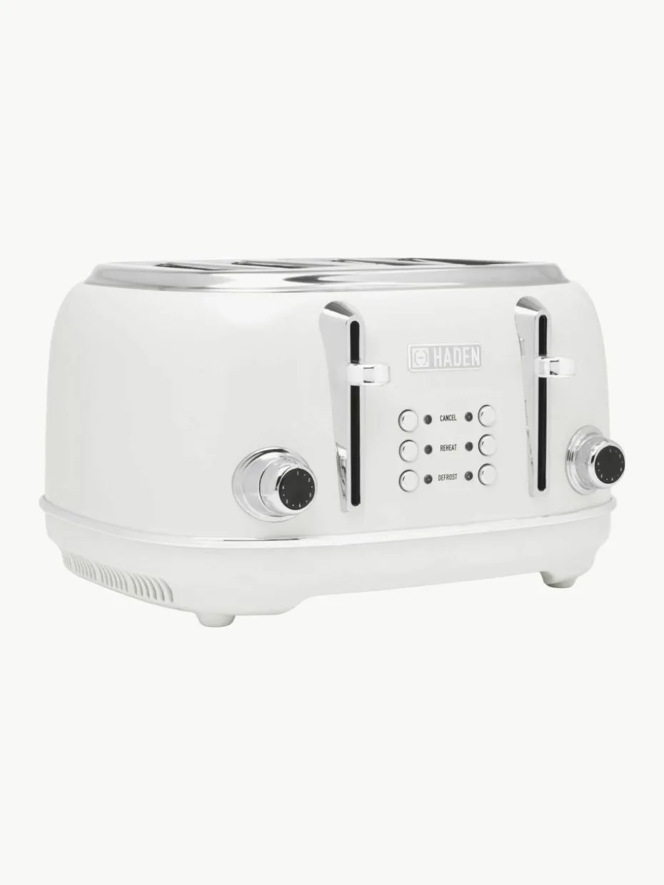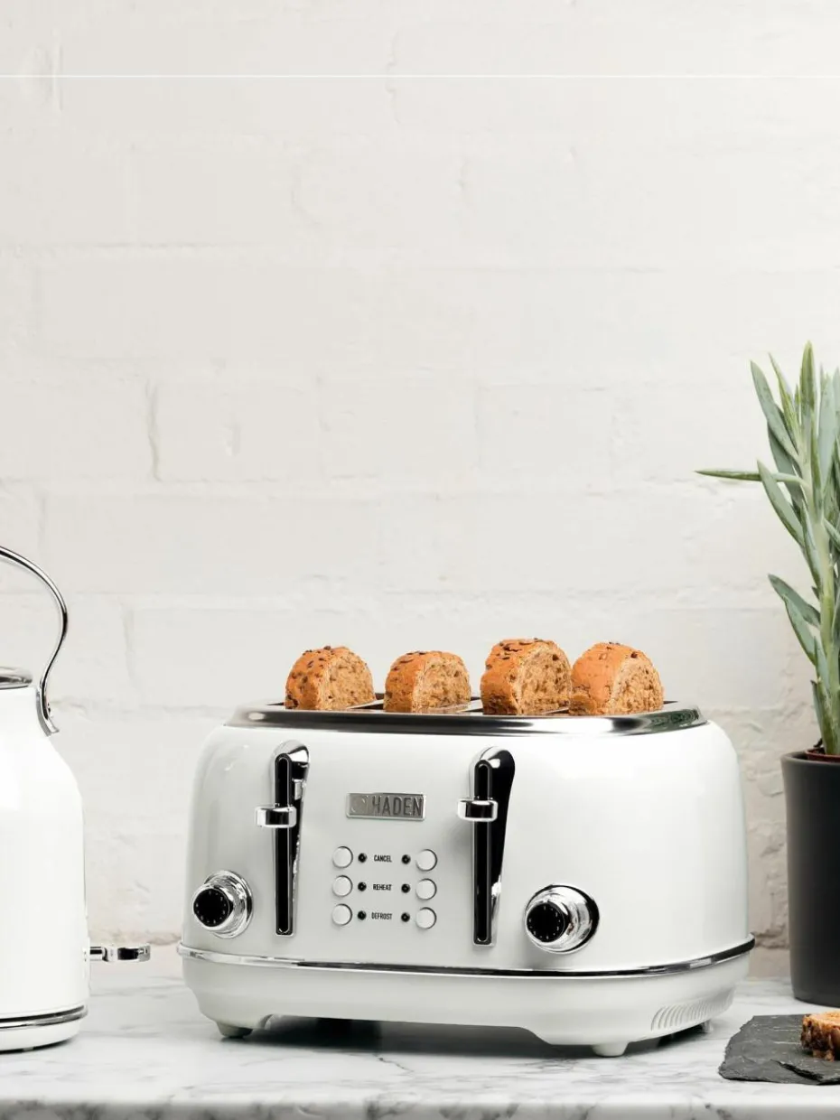 Die HERITAGE Kollektion von Haden verbindet klassischen Stil mit modernem Komfort und erinnert an eine Zeit der Schlichtheit, während sie mit fortschrittlicher Technik überzeugt.Der Haden HERITAGE vier-Scheiben-Toaster besticht mit seinem beeindruckenden Design, das den Charme der Vergangenheit mit zeitgemäßer Eleganz verbindet. Mit vielseitigen Einstellungsmöglichkeiten sorgt er dafür, dass Dein Toast genau nach Deinen Wünschen gebräunt wird. Eine Abbruchtaste ermöglicht es, den Toastvorgang jederzeit zu stoppen, während die Selbstzentrierungsfunktion das Brot automatisch perfekt ausrichtet. Praktische Zusatzfunktionen wie Aufwärmen, Auftauen und Anti-Blockade erhöhen den Komfort und die Benutzerfreundlichkeit.