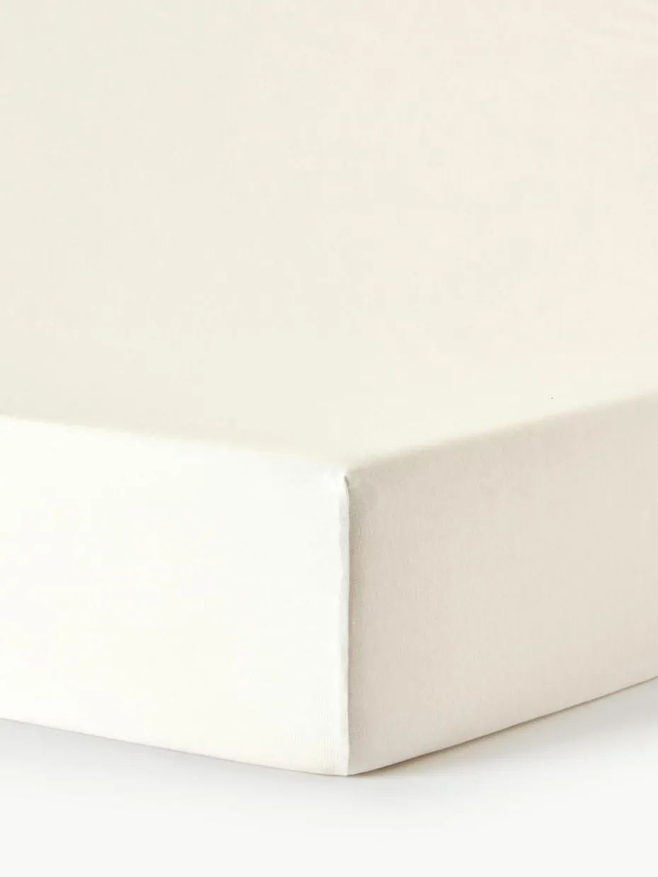 Das Jersey-Elasthan-Spannbettlaken mit Rundum-Gummizug ist für eine Matratzenhöhe von max. 15 cm geeignet.