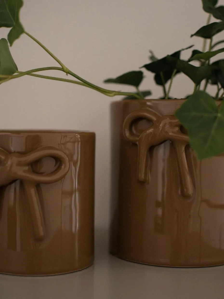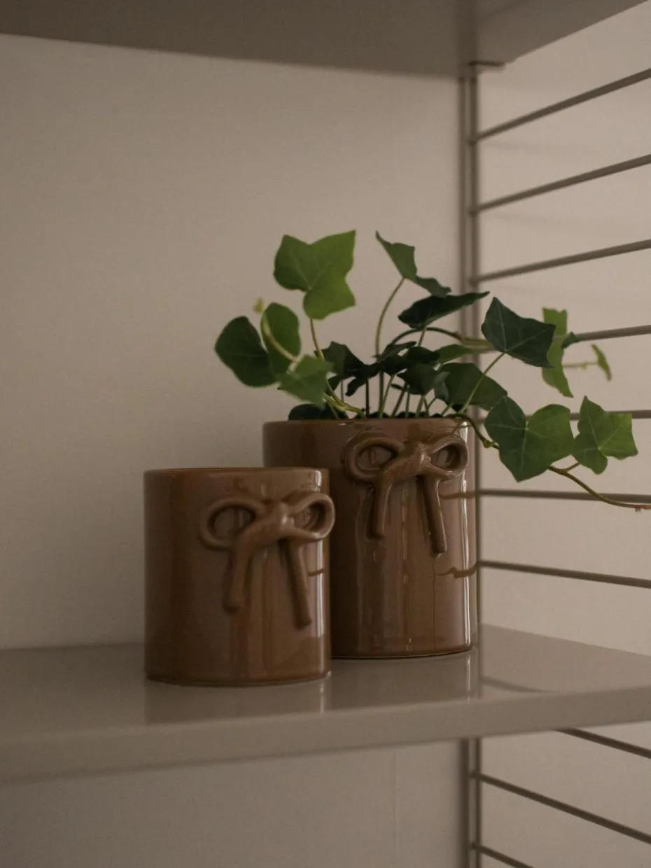 Der BOW Übertopf fesselt mit seinem schlichten, eleganten Design. Seine charmante Schleifenverzierung verleiht ihm eine verspielte Note. Ob als Pflanzentopf oder dekorative Aufbewahrung – dieses Keramikstück bereichert jeden Raum.“,“pdp_care_label“:“Da der Übertopf kein Entwässerungsloch hat, empfehlen wir, für die gleichmäßige Bewässerung einen Innentopf zu verwenden.