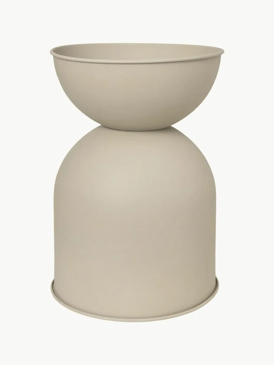 Der Hourglass Übertopf mit matter Oberfläche stellt nicht nur Deine Pflanzen höher, sondern ist auch eine ausdrucksstarke Ergänzung für jeden Raum. Die kleine Sanduhrform ist ideal für Räume mit engen Platzverhältnissen. Dank der Beständigkeit des Übertopfes gegen Witterungen ist er auch für den Einsatz auf Terrasse oder Balkon geeignet.“,“pdp_care_label“:“Da der Übertopf kein Entwässerungsloch hat, empfehlen wir, für die gleichmäßige Bewässerung einen Innentopf zu verwenden.