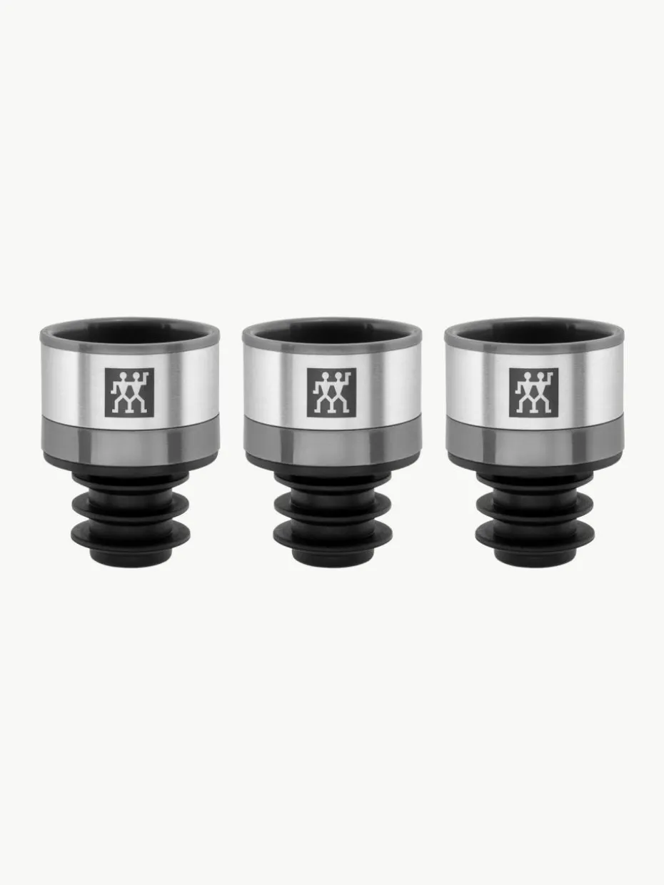Mit den Vakuum-Weinverschlüssen auf der FRESH & SAVE Serie von ZWILLING halten geöffnete Weine länger frisch und Aromen und Geschmack werden sicher bewahrt! Die formschönen, dekorativen Verschlüsse passen auf alle standardisierten Weinflaschenhälse (17–19 mm Innendurchmesser) und sind perfekt geeignet für die Aufbewahrung von Weinen, Ölen, Säften, jedoch nicht für kohlensäurehaltige Getränke. Versehen mit einer hochwertigen Edelstahlblende, sind die Weinstopper spülmaschinengeeignet und somit ganz bequem zu reinigen.“,“pdp_care_label“:“Spülmaschinengeeignet