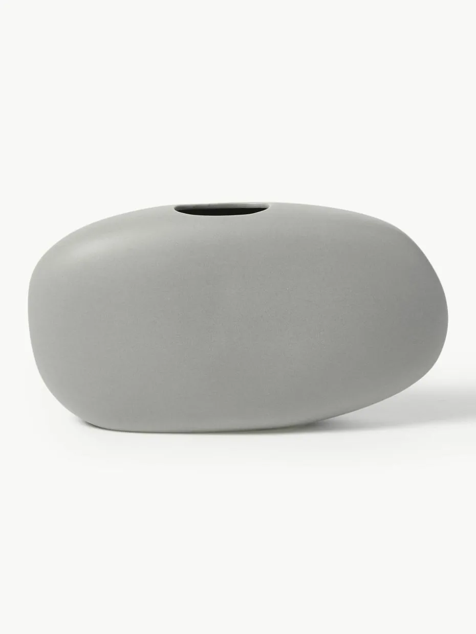 Hol Dir die Natur ins Haus mit COBBLE! Die organisch geformten Vasen in eleganter Kieselsteinoptik sind mit einer Steinstrukturglasur veredelt und bringen eine natürliche und raffinierte Note in Dein Zuhause. Perfekt, um jedem Raum ein frisches, erdiges Flair zu verleihen.