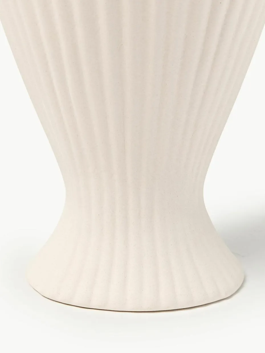 Die skulpturale Fountain Vase zieht durch ihre Eleganz und ihre weiche, gefältelte Optik sofort die Aufmerksamkeit auf sich. Inspiriert von der Form klassischer Springbrunnen, kann sie mit Blumen und Zweigen gefüllt werden oder als dekorative und zarte Ergänzung zu Deinem Tisch dienen.