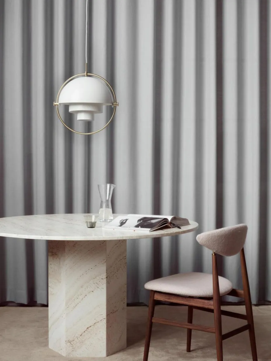 Mit seiner zeitlosen Eleganz, seinem einzigartigen Stil und seiner einzigartigen Vielfältigkeit bringt die MULTI-LITE Pendelleuchte Leben und Charakter in jeden Innenraum. Das Design der MULTI-LITE Lampe wurde 1972 von dem dänischen Architekten Louis Weisdorf erstellt, um seine Leidenschaft für Vielfalt widerzuspiegeln. Dank der einzigartigen Konstruktion können die beiden gegenüberliegenden Außenschalen individuell gedreht und in verschiedene Kombinationen verwandelt werden, um individuelle Installationen und Ausdrucksformen zu ermöglichen, wann immer dies gewünscht wird. Gemäß der Designphilosophie von Weisdorf kann das Licht nach oben, nach unten oder in einer asymmetrischen Kunstlichtform strahlen, ohne dass die Lichtquelle sichtbar wird.