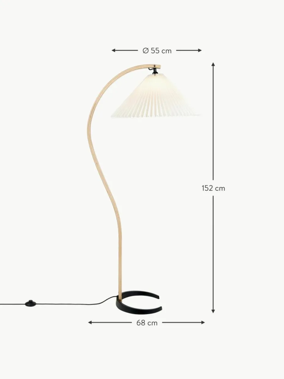 Mit ihrem verspielten Ausdruck, der geschwungenen organischen Form und dem Kontrast aus natürlichen Materialien ist die Timberline Stehlampe ein auffälliges skulpturales Element in jedem Raum des Hauses. In den 1970er Jahren von Mads Caprani entworfen, war sie unter ihren Zeitgenossen visuell unverwechselbar und wurde schnell zu einer internationalen Sensation.