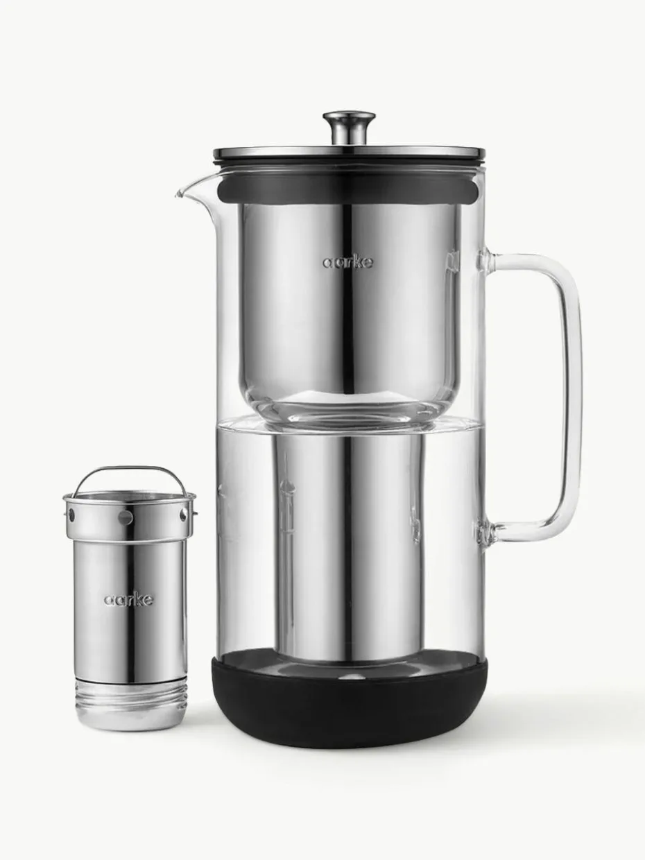 Der Aarke Purifier ist eine patentierte Wasserfilterkanne aus Glas und Edelstahl. Sie verfügt über eine nachfüllbare Edelstahlfilterkartusche und wird mit einem Beutel des Pure Filtergranulats geliefert. Das Granulat wird in die Filterkartusche gefüllt, um Dein Leitungswasser sauberer, besser und noch wohltuender zu machen.“,“pdp_care_label“:“Das gesamte System kann in der Spülmaschine gereinigt werden, ohne dass dabei Kratzer entstehen, in denen sich Bakterien bilden könnten.