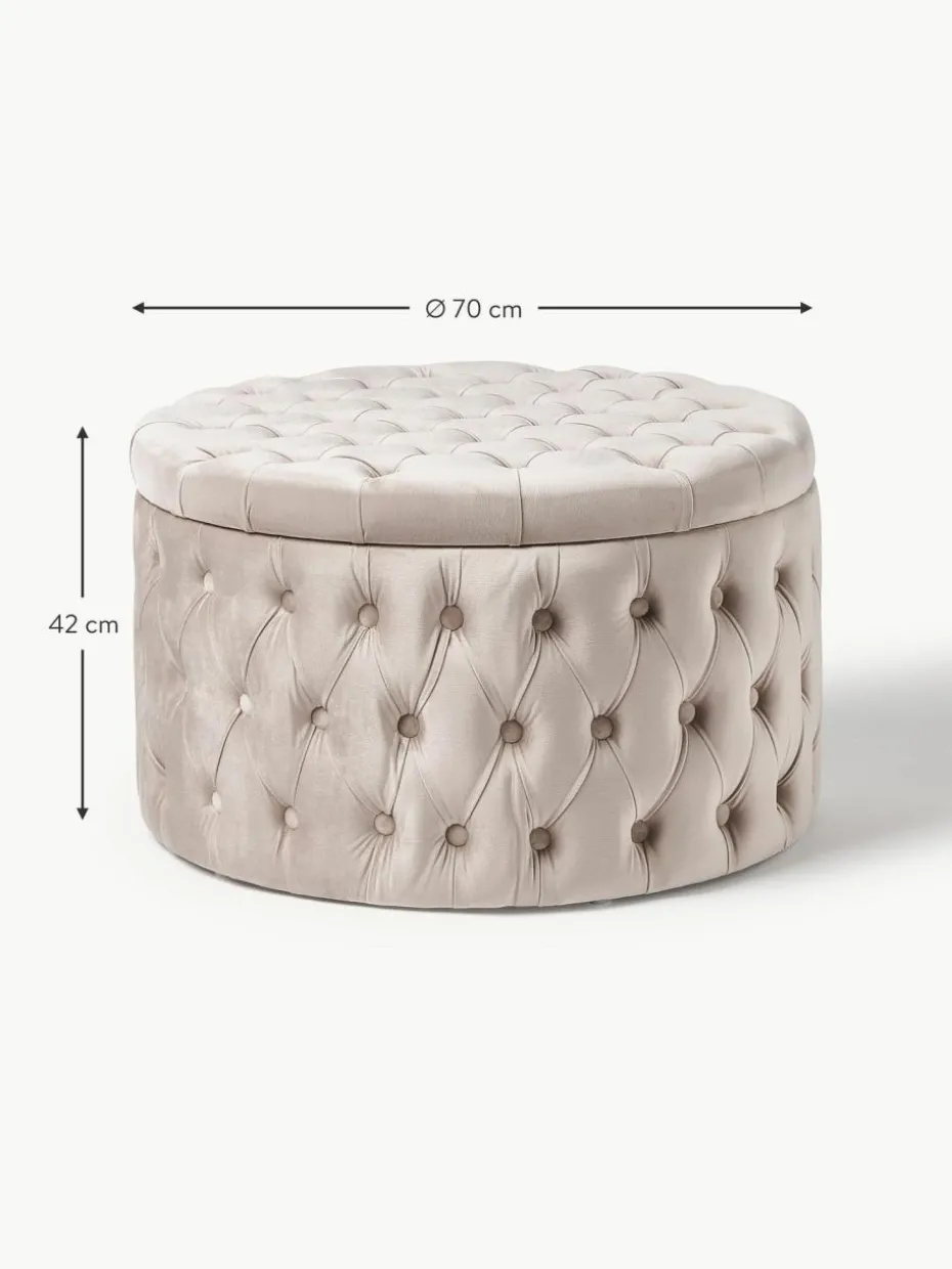 Egal ob zum Füße hochlegen oder als zusätzliche Sitzgelegenheit für Gäste: Chiara ist vielseitig einsetzbar und bietet noch dazu viel Stauraum. Unter dem Deckel verschwinden Decken, Kissen und Kleidung im Kinderspiel. Besonders gut gefällt uns der softe Samtbezug und die dekorativen Zierknöpfe.“,“pdp_care_label“:“Das Produkt wird fertig montiert geliefert und kann nach dem Auspacken sofort verwendet werden.