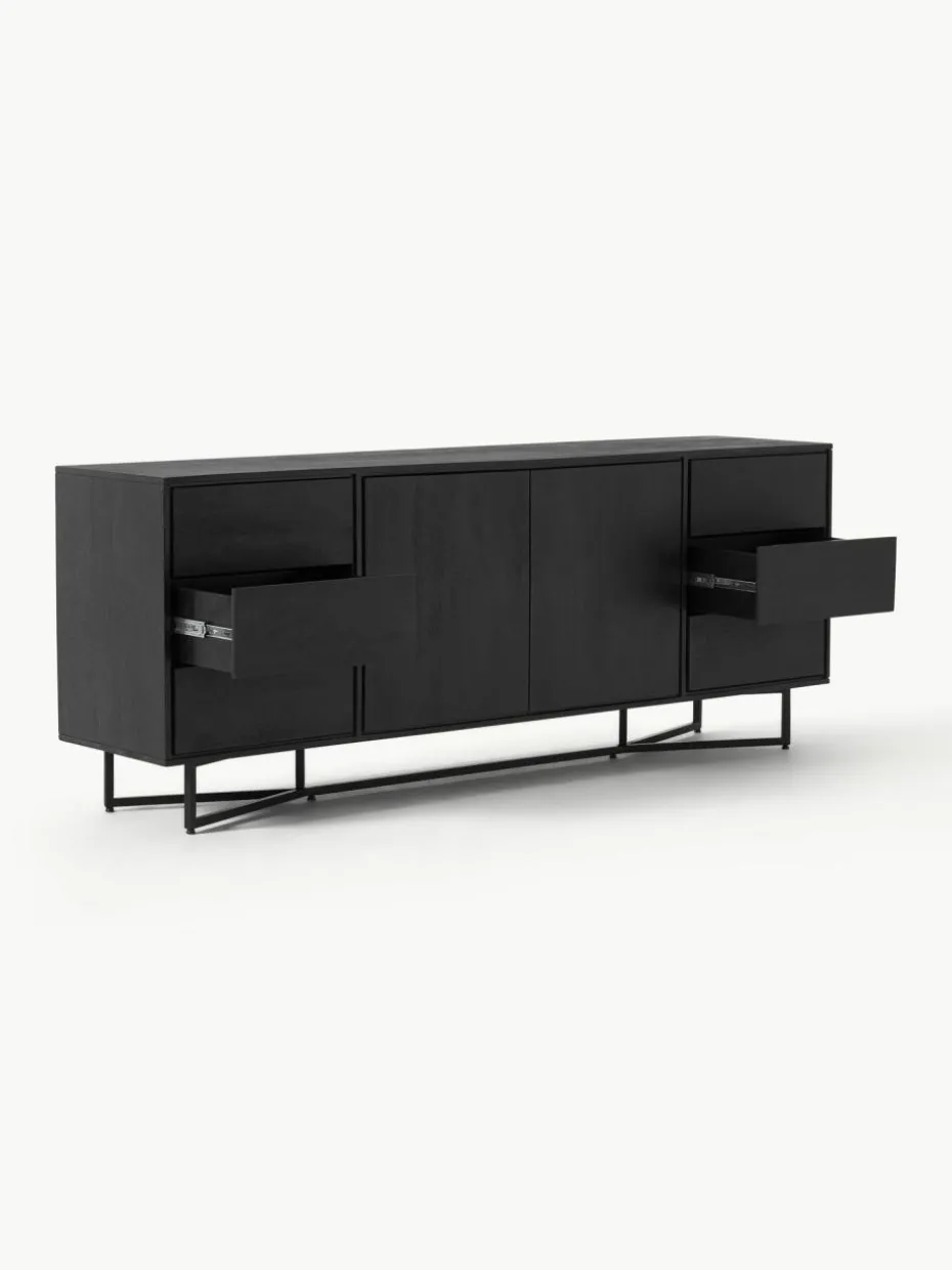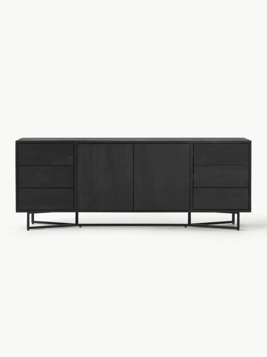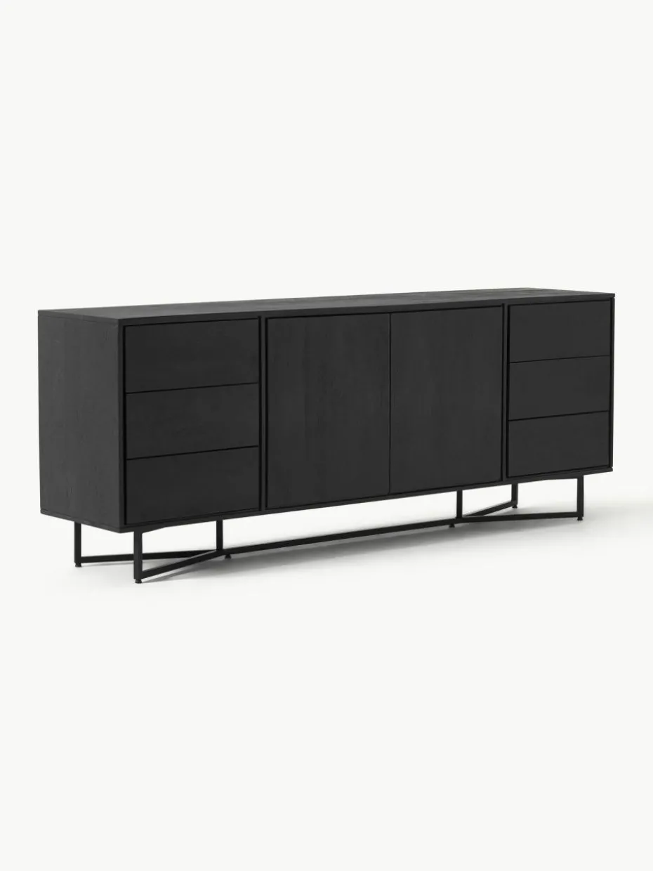 Das Sideboard verfügt über sechs Schubladen und zwei Fächer.